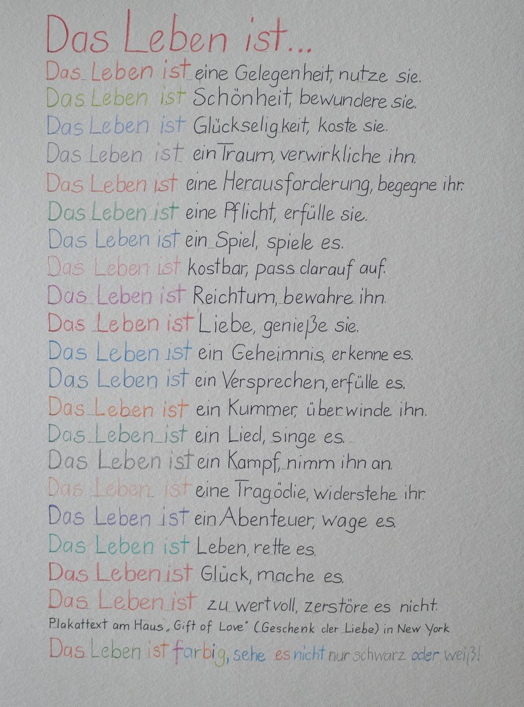 Der Text „Gift of Love“ war der Einstieg in das Thema.